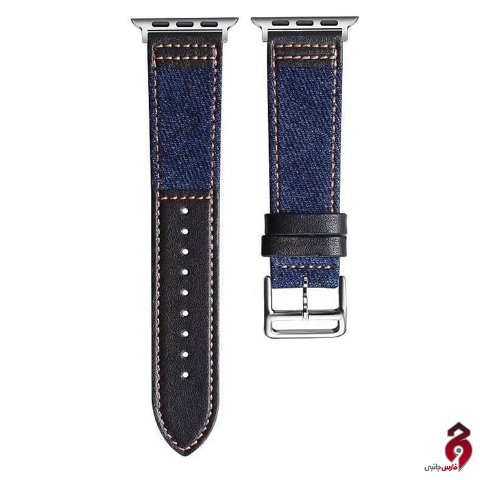 خرید بند اپل واچ جین و چرم آبی تیره ومشکی سایز ۴۲ / ۴۴ از فارس جانبی