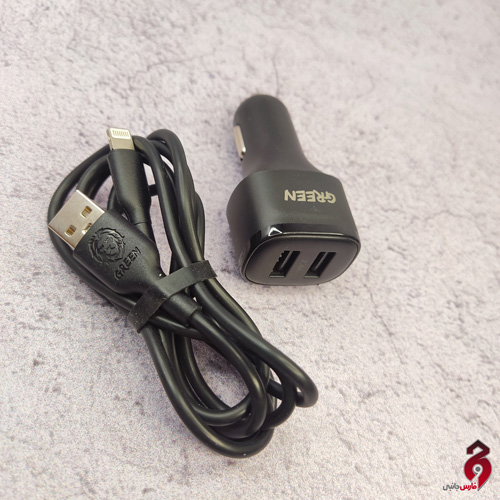 شارژر فندکی Green Lion دو پورت با کابل لایتینگ