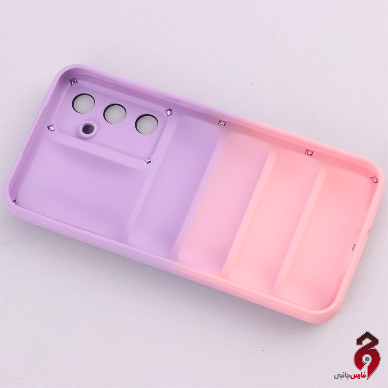 خرید قاب پافر رینگی طرح برف محافظ لنزدار سامسونگ S23 FE 5G یاسی صورتی از فارس جانبی