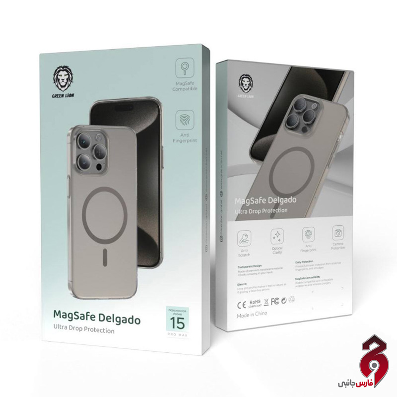 خرید قاب گرین لاین Green Lion مگ سیف Delgado آیفون iPhone 15 Pro Max تیره از فارس جانبی