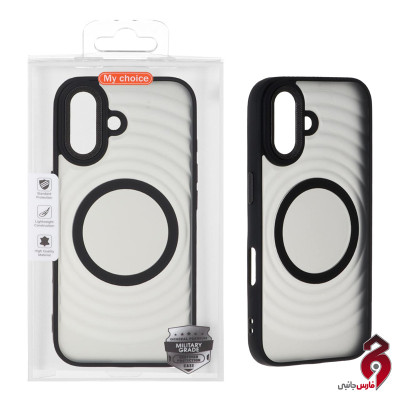 خرید قاب Wave مات لنز کربن Magsafe آیفون iPhone 16 مشکی از فارس جانبی